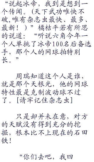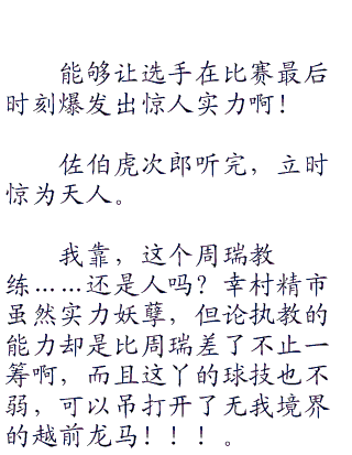 “六角的粉丝还真是多啊。”神尾不禁感慨,不动峰就没有这种待遇,要知道他们刚刚成立半年本身就没什么底蕴,再加上不动峰的学生人数也不多,而且又都不是多支持网球队,所以来观看的不动峰学生很少。