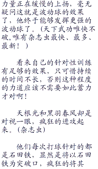 这球的力道强劲,而且石田铁要积蓄力量,不好用力量还击,所以根本就没有回击。