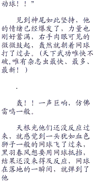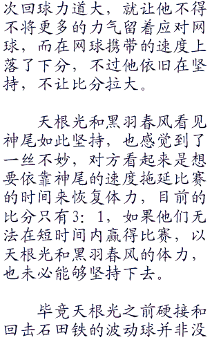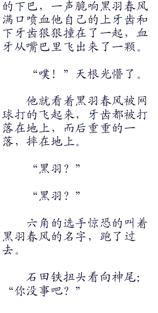 然而网球的速度却太快了,一瞬间就打到了石田铁的腹部,把他打的退后了两步!