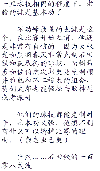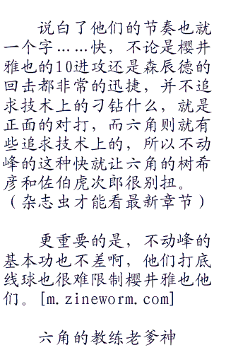 而且经过二个多月的训练,不动峰所有选手的属性提升也都是非常不错的,突出的个人属性都达到了90点以上,有高一些都达到了95点以上,再加上振奋的被动:在选手进行回击防守的时候,综合防守增强5点,这就足矣弥补一些基本功上的差距,完全可以跟六角这种强队相比了。