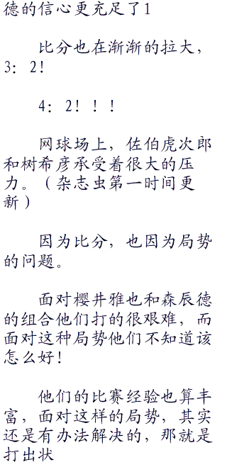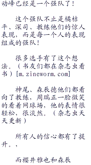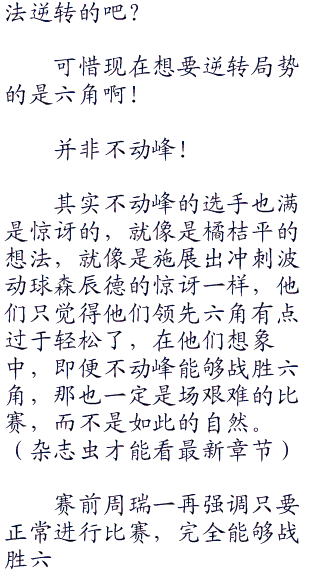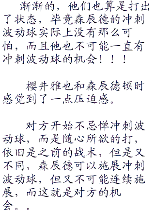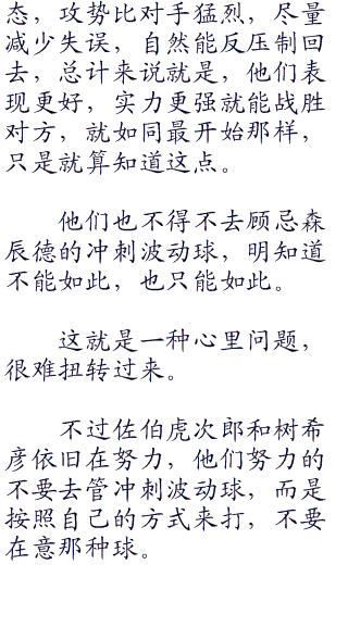 可以想象,原本他们满怀希望能够依靠这种战术来扭转局势,结果却没想到不动峰更擅长这种球,一旦他们打出来,反而给了森辰德施展冲刺波动球的机会。
