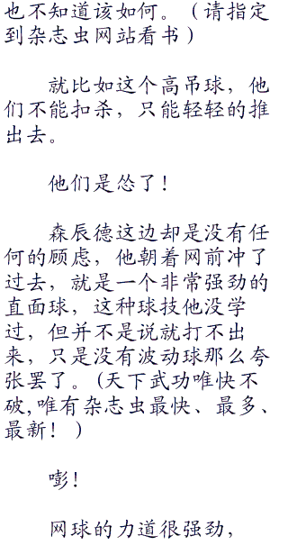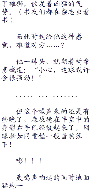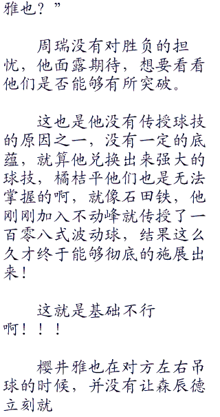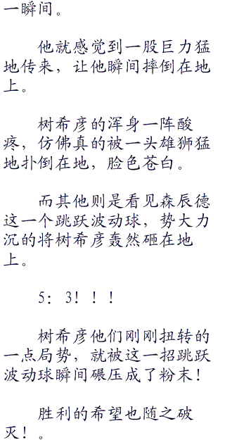 而对方都是三年级的学生,参加关东大赛都参加了二次,不提从小的培训,单单只是这三年的训练基本功必然要比他们强很多,要真的只是单单不论球技,森辰德和樱井雅也真的很难是他们的对手!