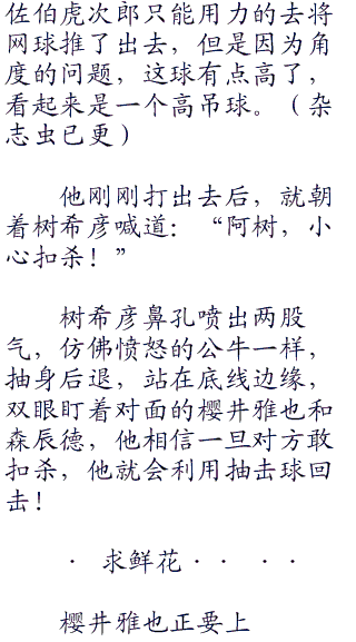 看见树希彦和佐伯虎次郎开始反击,所有六角的学生都开始助威呐喊起来。
