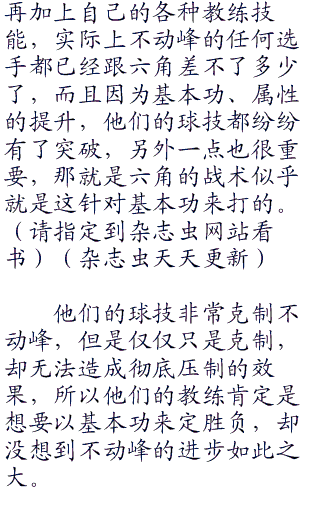 之前自己的表现虽然也不错,但跟石田铁他们的差距却大,而现在真的没有多少差距了,自己的基本功扎实球技也掌