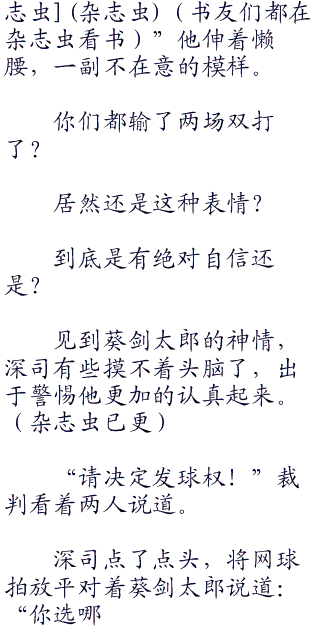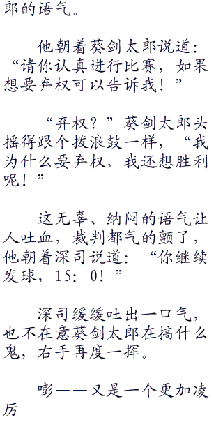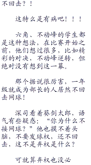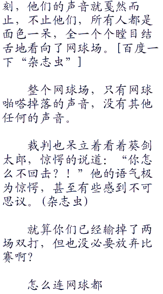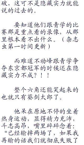 所以六角的教练老爹根本没有谈到原10因,只是看向葵剑太郎说:“到你比赛了……”