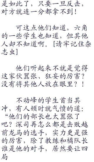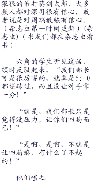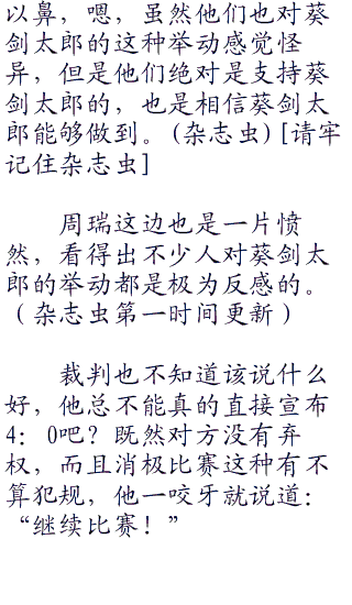 葵剑太郎挠了挠头,“能不能把比分改成0:4?不然我没什么压力啊!”