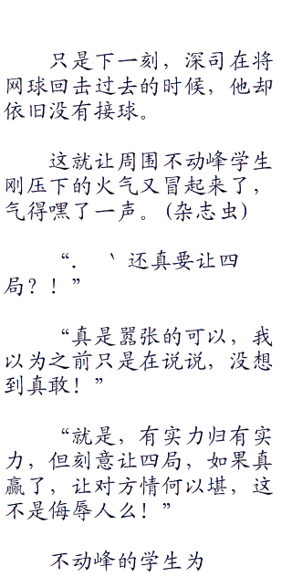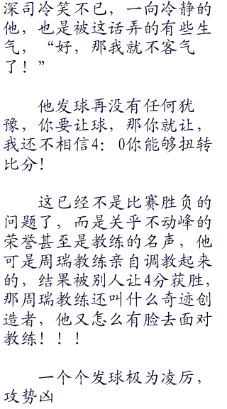 面对深司,击败越前龙马的深司直接来一句,要不把比分改成0:4吧,不然他没什么压力?这特么让人一听就是气愤啊。