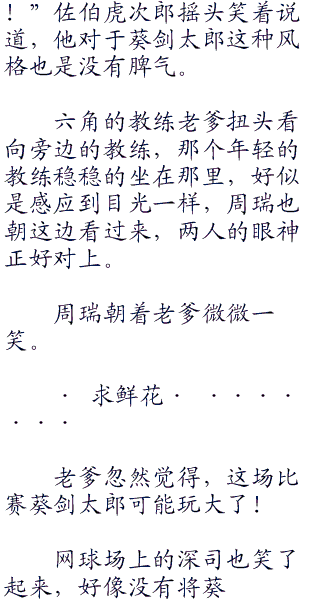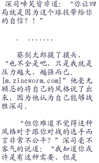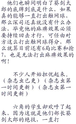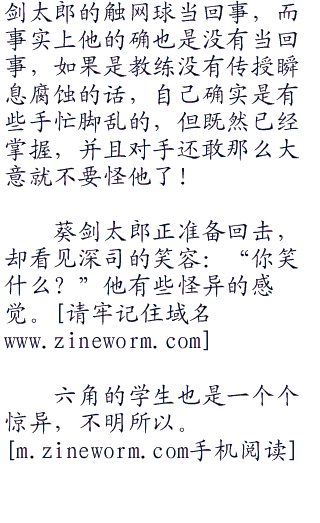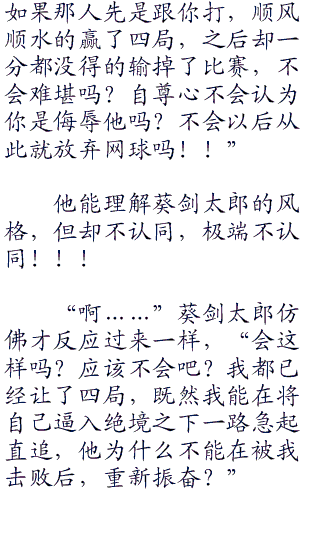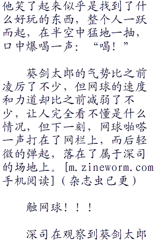 深司再度变化了力道,将网球还击回去,他对于葵剑太郎是真的看不懂,这人凭什么有那种自信确定他一定就能翻盘?