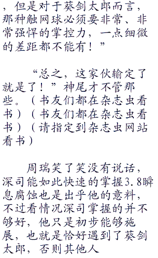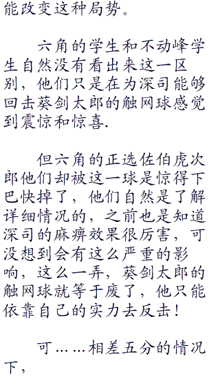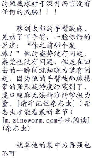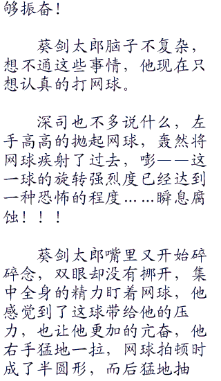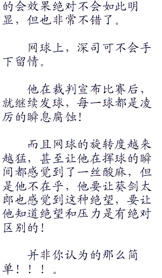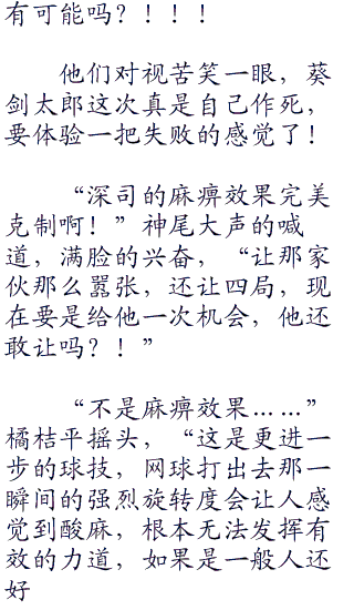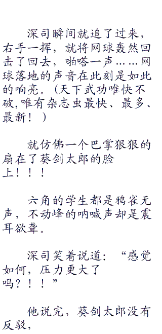 深司不知道葵剑太郎如果遇到这种情况能不能振奋起来,所以他想要让葵剑太郎尝试一下,他说道:“既然你相信能够振奋,也喜欢压力,那么我就让你体会绝望和压力的区别!”