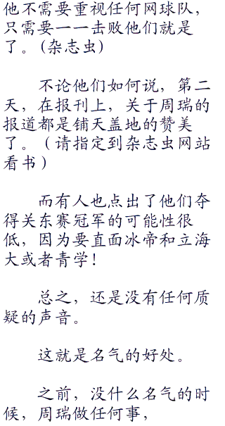 周瑞接受完采访后,也没有带领橘桔平他们去看其他球队的比赛。
