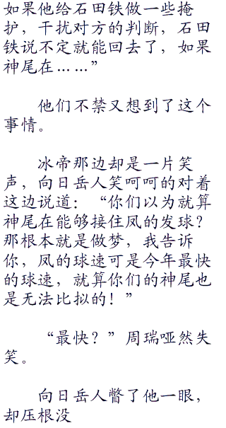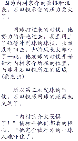 风长太郎的一球入魂速度比他想象中的还要快一些,虽然比不上神尾的音速球速度,但是强劲的力道却是有过之而无不及,偏偏神尾有不在,只有石田铁和内村京介应对。