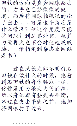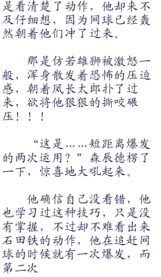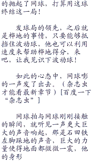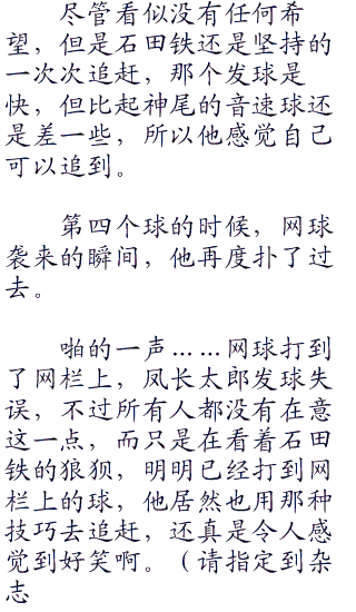 这不仅仅只是一个短距离爆发速度的技巧就可以弥补的,而是需要准确的判断到对方的球路轨迹,这个东西石田铁这种力量型的选手绝对不擅长。