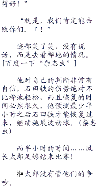 足够让石田铁坚持到比赛结束……或者说击溃凤长太郎!