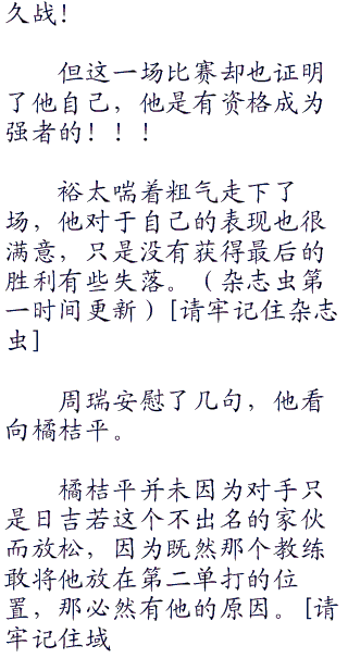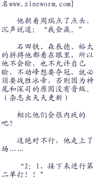 所以在接下来的比赛中,不二裕太的发挥就更漂亮了,慈郎脸色依旧带着灿烂的笑容,不过冰帝其他的笑容却无法继续,他们无法理解慈郎即将输掉比赛还能有笑着面对的乐观,他也无法理解这样都能被逆转,他们看向周瑞的眼神真的像是在看一个怪物。