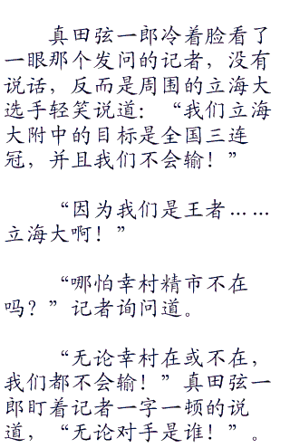 “好……”裁判如梦初醒,连忙宣判,“切原赤也胜,本场比赛结束,胜者是立海大!!”他大声的喊出,无奈声音还是小了一些,直接被淹没在众人的惊叹声中。