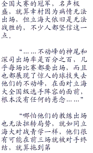 因此,第二天周瑞接受采访所说的话以及立海大的态度就上了各个报刊的报道上。