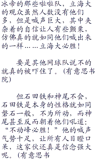 万众瞩目的情况下,周瑞没有表现出对立海大的畏惧,反倒是一副强势拿走胜利,带走冠军的架势,那样子根本没有赛前那些记者所说的半点畏惧。
