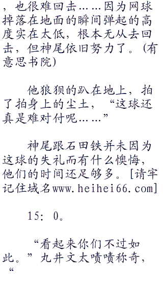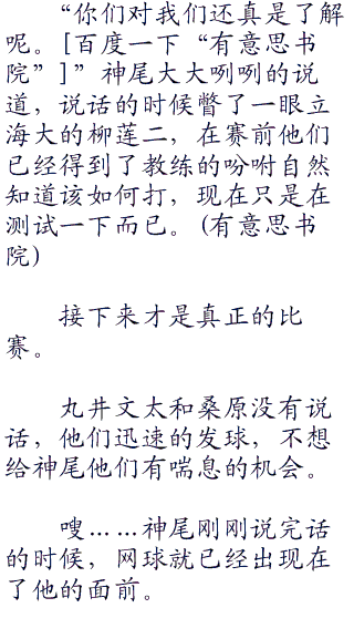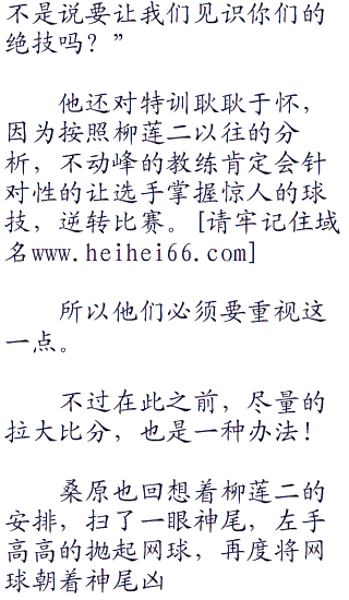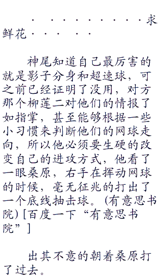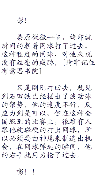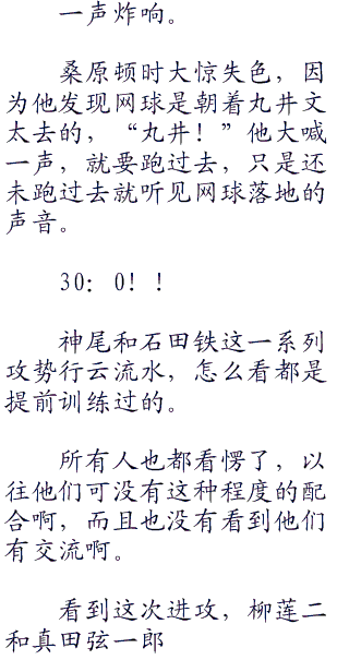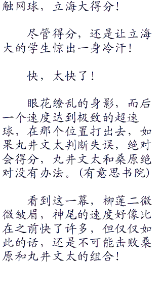 神尾挥出网球的速度也比之前快了许多,但对手是立海大,是正选全部都是全国级选手的立海大,也是连续二届称霸全国大赛的网球队。