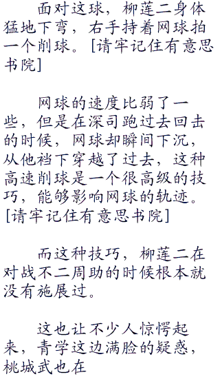 “你错了。”周瑞摇了摇头,看向网球场中微微眯着眼的柳莲二,“那家伙可是立海大的三巨头,实力绝对没有之前表现的那么弱,之所