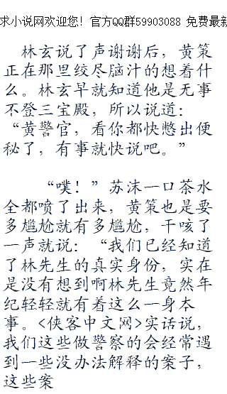 “噗!”苏沫一口茶水全都喷了出来,黄策也是要多尴尬就有多尴尬,干咳了一声就说:“我们已经知道了林先生的真实身份,实在是没有想到啊林先生竟然年纪轻轻就有着这么一身本事。实话说,我们这些做警察的会经常遇到一些没办法解释的案子,这些案子一直挤压在一起,如果始终破不了的话也是麻烦一大堆。所以咳咳,知道林先生身怀奇术,希望林先生能帮帮我们的忙!”
