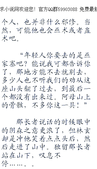“年轻人你要去的是巫家寨吧?能说我可都告诉你了,那地方能不去就别去,多少人也不听我们的劝从这座山头翻了过去,到最后一个都没有出来过。阿母山上的骨骸,不多你这一具!”