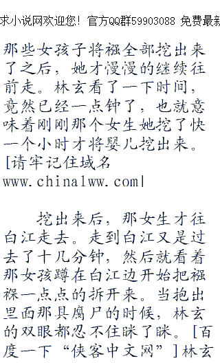 林玄没去看,不是因为不敢,而是不想去看。在他的心里隐隐间已经猜测到了什么,等到那些女孩子将襁全部挖出来了之后,她才慢慢的继续往前走。林玄看了一下时间,竟然已经一点钟了,也就意味着刚刚那个女生她挖了快一个小时才将婴儿挖出来。