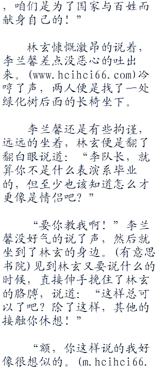 “公园咱们都转遍了,接下来去哪里?”李兰馨问着林玄,林玄说:“哪里也不去,去了也不知道地方在哪儿,倒不如在这里等着。一个多月前他们出现在了这家公园。现在又出现了,那就意味着这座公园里肯定有什么吸引他们的东西。李队长,你要是不介意的话,当我一晚上的女朋友吧。”