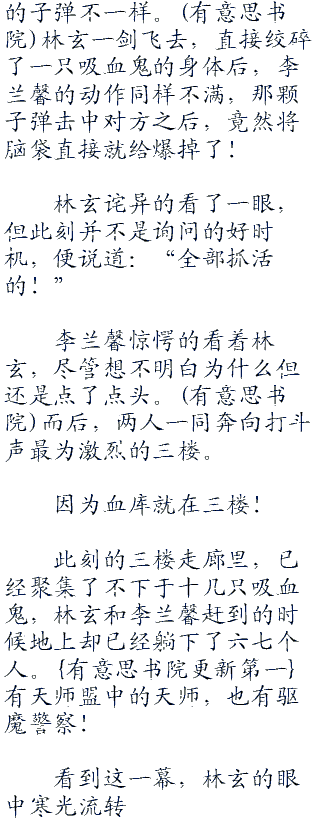 都没有时间去管下属如何,林玄和李兰馨快速的冲了进去。在一楼,他们便是和吸血鬼相遇。李兰馨一边走一边给自己的枪填充子弹,但是那子弹却是与普通