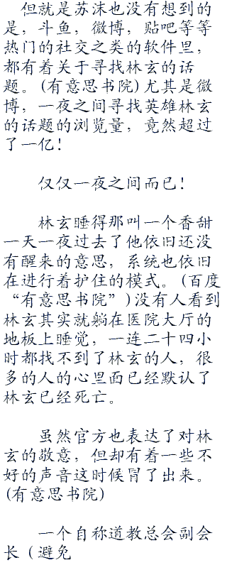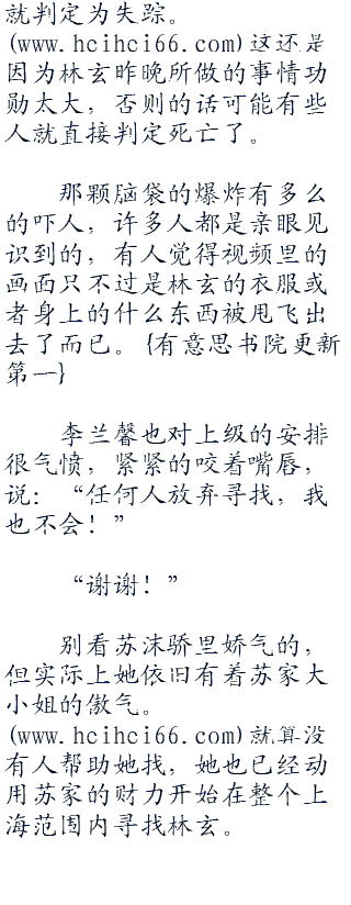 苏沫别的没有怪任何人,但唯独接受不了林玄失踪了的消息。而且官方的人实在是太冷漠了,只是找了一晚上