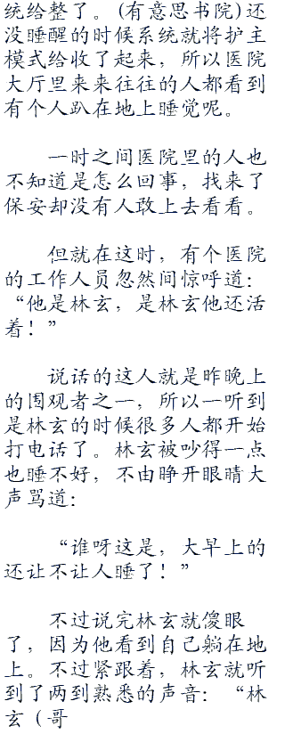 “你们做了你们该做的事情,我想就算是林玄哥也不会怪你们。但是你们不该就这么放弃寻找,视频里面明明都能看清楚他的身体被冲击进了医院里面的,怎么能说他已经失踪了!”