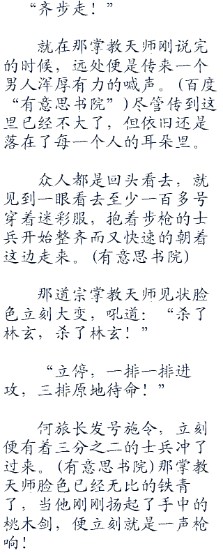 林玄还真是怒了,紫金斩鬼剑微微震颤着。而那掌教天师此刻却是冷笑一声,说道:“想杀人?那也要看看你有没有那个本事,撤阵!”