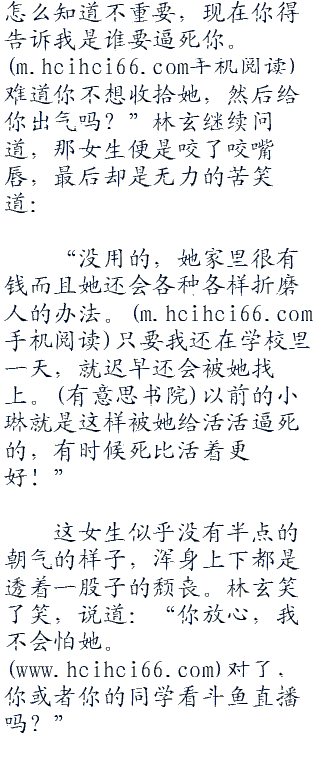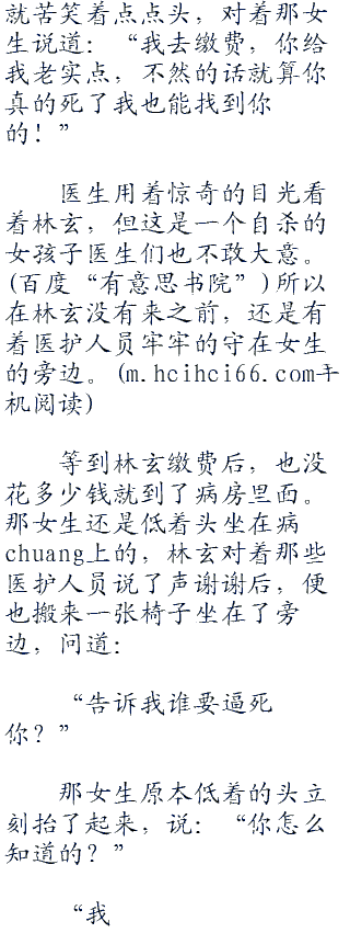 齐校长从震惊中反应了过来,连忙点头掏手机打急救电话。但是那个女生却是极其的不配合,哭号着说:“让我去死,我不想活了!”