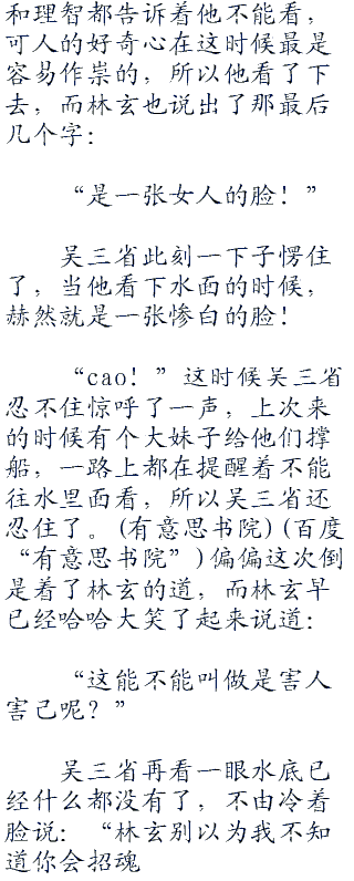 不知道为什么,林玄在说的时候吴三省已经控制不住的自己就往水下面看去了。尽管他的经验