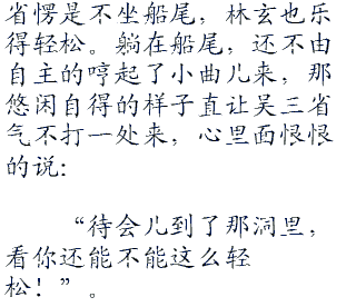 林玄点了点头,也没有多话就是跟着一起上了小船。到了船上后,看在吴三省受过伤的份上林玄就照顾照顾他自己拿着一只浆和吴邪一起朝着洞划去。