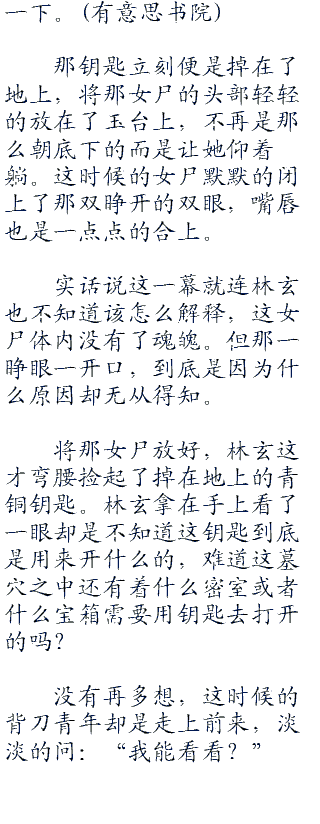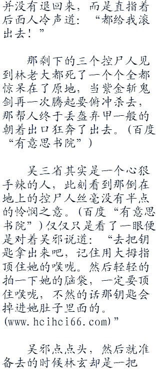 吴邪微微点点头,但却有着一帮人比吴邪还要快。那六个控尸人死了两个同伴似乎都还没有长记性,竟然这个时候听到有钥匙就疯了似的扑了上来。