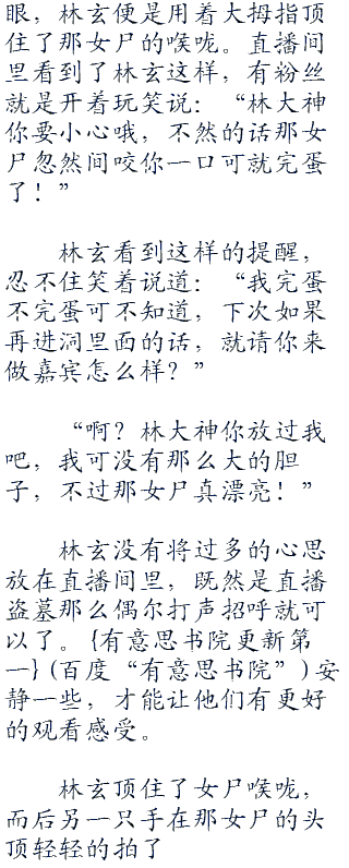 此刻的那女尸双眼和嘴都已经打开来,但吴邪却在这时说道:“快看,她的嘴里面好像有什么东西。”