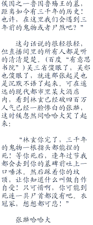 青眼狐尸,千年不曾腐烂的女子,这一系列他们都未曾看到过的东西,让他们足足饱了一顿眼福。但没有人愿意这时候就停下,长夜漫漫谁不寂寞啊!