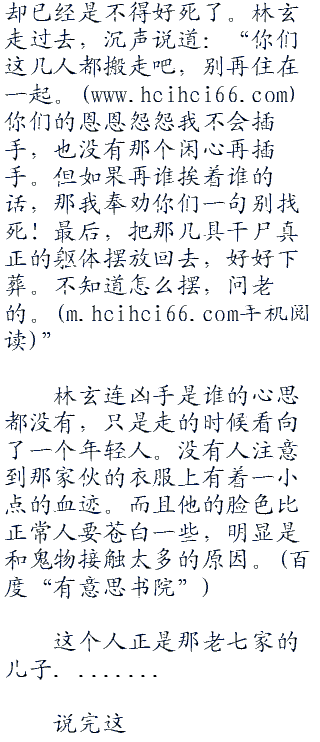但隐居了没多久的时间,老二也就是这个男鬼厌倦了想要出去。可其他六个人却是担心他出事把其他几个人全部供出来,所以便将他们一家七口人全部绑了起来丢进了这山洞烧死。最后再将那栋房子也全部烧“二零三”掉,毁尸灭迹!