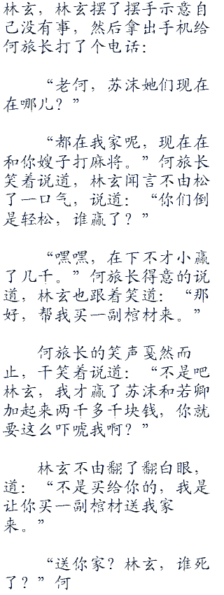 张麟一步步的朝着林玄走来,林玄握住了李兰馨的手腕说道:“回车里去吧,咱们的规矩别忘记人你来,死的我来。”