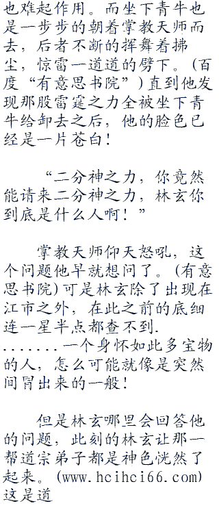 对方绝对是个掌握万般道术之辈,否则的话他也坐不到掌教的位置上。当那青年冲来时,他几乎第一时间便是双手掐诀怒喝道:“神来!”