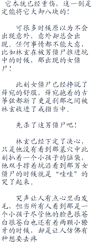 林玄的时间还是抓的太巧了,当他才跳出坑中的时候,另外一道身影也同时跃了出来。一看正是一古装女子,只不过身体如同那男僵尸一样都有了不同程度的腐烂。面部无法去辨认清楚她生前长得如何。就算她长得再漂亮这时候的她,也始终只是一只僵尸!