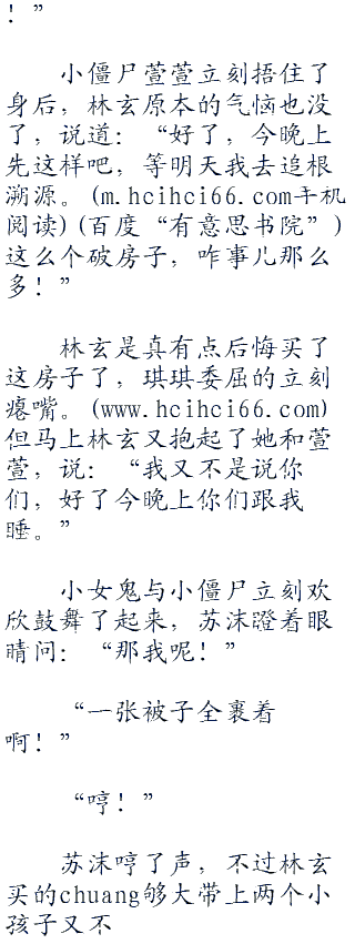 一下子从秋千上跳了下来,小僵尸便是手伸在前方又去动了一下。那尸体立刻被她推到了后面,可马上又荡了回来。小僵尸的脸上忽然间露出一笑,又一推可突然之间那原本闭着眼睛的尸体突然睁开了双眼。