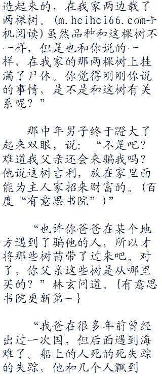 “是啊,我父亲是一个花草树木的爱好者。不管是家里的房子,还是他在外面做的房子都会用花草树木来点缀。林天师你的意思不会是说,都是因为这棵树吗?这树能有什么的啊,我怎么看不出来?”