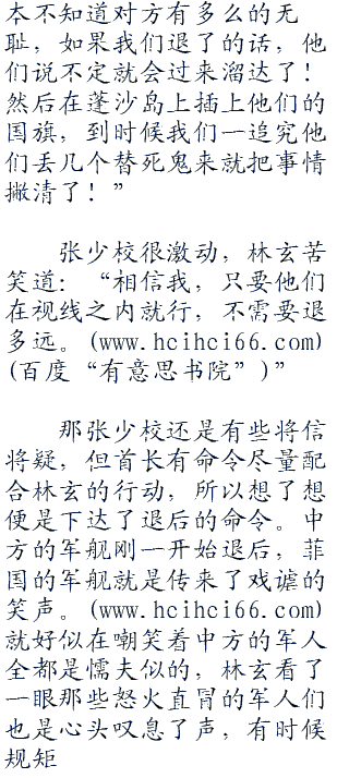 林玄乘坐着一艘的军舰和那位姓张的少校一起赶到了蓬沙岛的位置,这片海域乃是与菲国交界的海域。