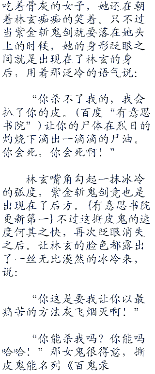 没有多久,那两个道士便是在女子的幻境中自相残杀。而那女鬼的的怨气何其之大,竟然能蛊惑的那两人互相撕扯对方的皮!