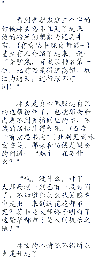 直播间里的粉丝们已经一头雾水了起来,一个老和尚有什么好看的啊?没多久就有人问林玄:“林大神,那老和尚到底是谁啊?说点话怪里怪气的,不会是只秃驴鬼吧?