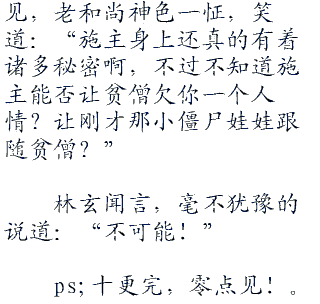 “大师,看来咱们是有缘人啊!”林玄也跟着笑道,那老和尚笑了笑又看了一眼那个坟包,说:“说来贫僧还得感谢施主呢,贫僧来这便是听说有妖孽作祟便寻到了这里。可惜啊还是晚了一步,劳动施主动手收了那妖孽了!”