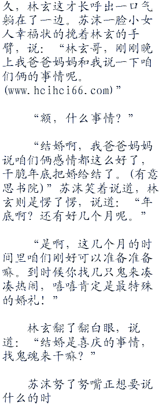 林玄笑了笑苏平夫妻就上楼休息去了,苏沫将他拉到了身边,说道:“林玄哥,你下次捉鬼的时候能不能带我去啊