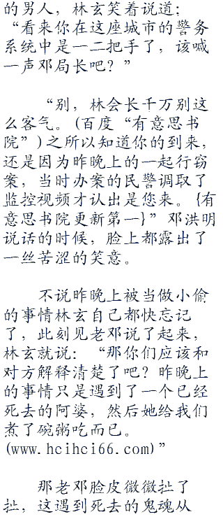 “我叫邓洪明,您喊我老邓就行了。之前何旅长已经和我通过电话,说有什么事情可以找林会长请求帮忙,我和他之前是军队里的战友。不过他留在了军队,而我到了警务系统工作!”