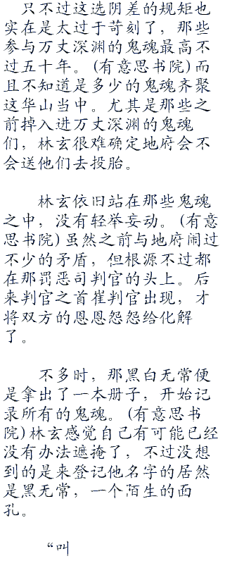 原来是地府选阴差啊,怪不得他完全算不出今天到底是个什么稀罕日子。据说地府是每五百年才会补充一次阴差,但具体是哪一天没有任何人知道。就连地点也是随机选择的,并没有确定的地方。